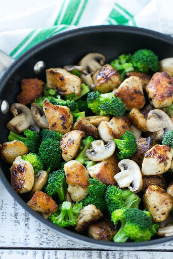 - 1 pound boneless skinless chicken breast, cut into 1 inch pieces