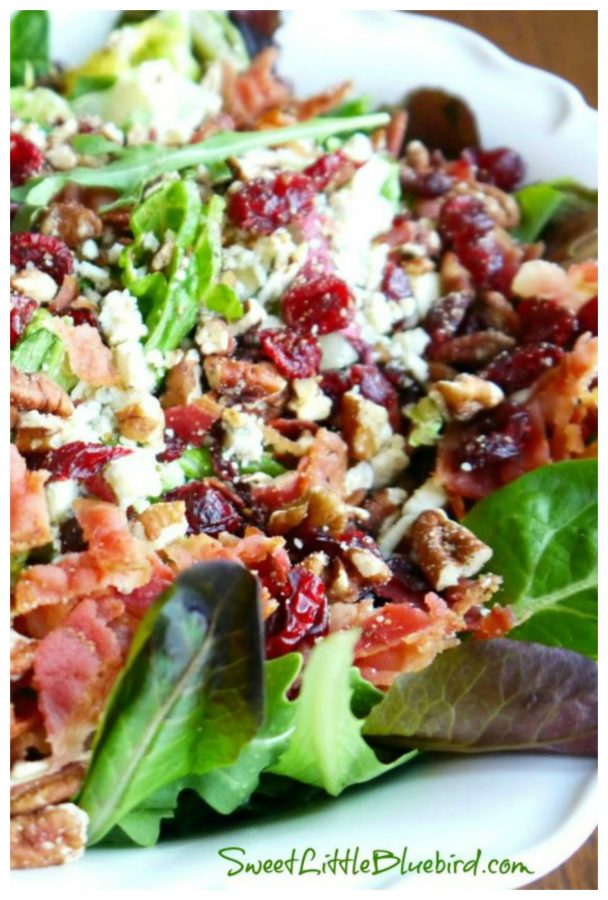 GORGONZOLA, APPLE, CHERRIES, PECANS & BACON SALAD WITH A SWEET BALSAMIC DRESSING!