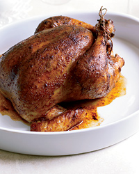 Loosen the skin on the chicken breasts and around the legs. Put each chicken in a bowl and cover with the marinade. Rub the marinade under the skin and in the cavity. Turn the chickens breast side up and refrigerate overnight.
