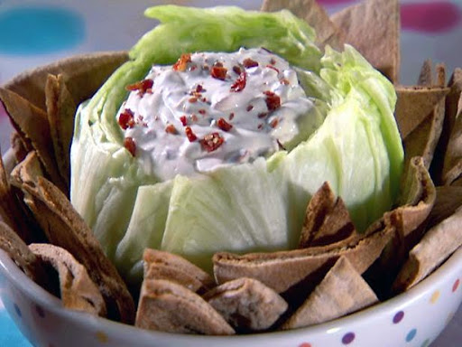 To serve, spoon BLT dip into hallowed out lettuce head and set in the center of a serving plate. Place toasted pita triangles around edge of plate.