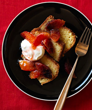 5. Serve the cake, sliced, topped with the oranges and mascarpone.