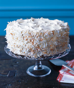 1. Heat oven to 350° F. Toast the coconut on a baking sheet, tossing occasionally, until golden, 10 to 12 minutes. Butter two 8-inch round cake pans. In a large bowl, whisk together the flour, baking powder, and salt.