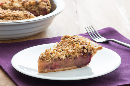 Combine all remaining ingredients except 2 Tbsp. butter in medium bowl. Cut in butter with pastry blender or 2 knives until mixture resembles coarse crumbs; sprinkle over pie.