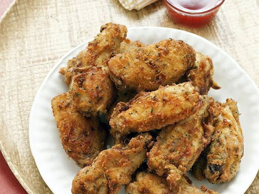 3)Heat 1/2 inch vegetable oil in a medium cast-iron skillet over medium heat until a deep-fry thermometer registers 350 degrees F. Fry the wings in batches until crisp and golden brown, 5 to 6 minutes per side. Remove with a slotted spoon and drain on paper towels. Whisk the hot sauce and honey in a bowl. Serve with the wings.