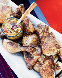 Brining isn't imperative," says Michael Chiarello, "but it adds juiciness." Before roasting, he rubs the brined birds with a spice mix and brushes them with butter; the flavors are even better at room temperature, making this a stellar picnic dish.