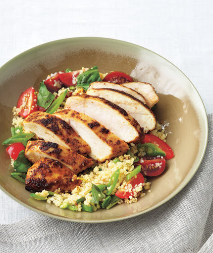 Heat 1 tablespoon of the oil in a large skillet over medium heat. Season the chicken with the paprika, cumin, ½ teaspoon salt, and ¼ teaspoon pepper.
