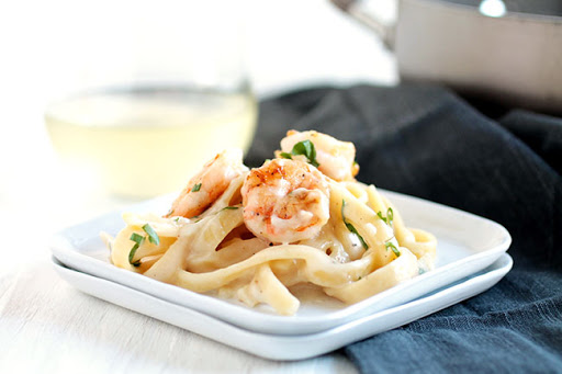 1.Add cooked pasta and shrimp to sauce pot and toss to combine. Top with fresh chopped parsley for garnish and serve immediately.