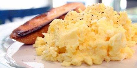 1. Separate the eggs. Break up the whites a little with a fork. Melt half the butter in the saucepan over medium-low heat. Pour in the egg whites, and cook, stirring constantly with a wooden spoon over low heat, until they start to stick to the sides of the pan. Keep stirring, scraping up what sticks to the sides and bottom, until the whites turn into swirls of white, like a blizzard. Now add the yolk and keep cooking just a bit longer until they hold together, but are not overly set.