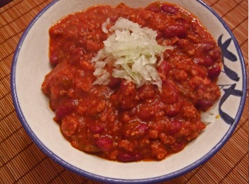4 - When chili has been simmering for 5-6 minutes, add in Worcestershire, chili powder(start with 2 Tb), red wine, and paprika. Let simmer for a few minutes, taste and adjust flavor.