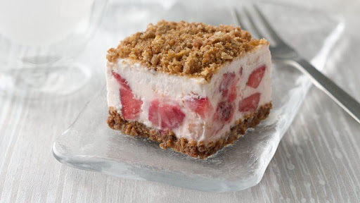 6 In a buttered glass dish, press the butter-crumb crust mixture on the bottom. Top with strawberry mix and then add the reserved granola crumbs to the top.