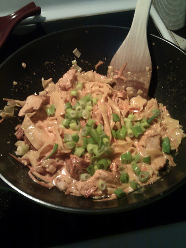When cream sauce starts to thicken, stir in parmesan and pasta. (Do not rush this step.)