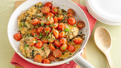 3. Return skillet to medium-high heat. Add tomatoes and tapenade to skillet. Cook and stir 2 to 3 minutes or until tomatoes just begin to soften and mixture is heated through. Serve tomato mixture over chicken; top with remaining 2 tablespoons basil.