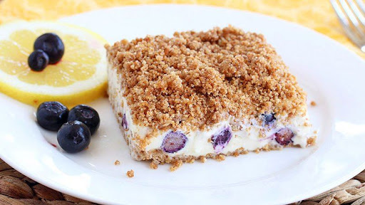5 Let the dessert sit for about 5 minutes after removing from the freezer to soften, then cut into squares and serve.