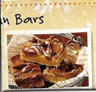 HEAT OVEN TO 350 COMBINE ALL CRUST ING4REDIENTS EXCEPT PECANS IN BOWL BEAT AT MED SPEED UNTIL MIXTURE RESEMBLES FINE CRUMBS PRESS ONTO BOTTOM OF UNF=GREASED 13X9 PAN PLACE PECANS EVENLY OVER UNBAKED INGREDIENTS COMBINE 2/3 CUP BUTTER AND 1/2 CUP BROWN SUGAR IN 1 QT SAUCEPAN COOK OVER MED HEAT STIRRING CONSTA9NTLY UNTIL ENTIRE MIXTURE BEGINS TO BOIL 1 MIN POUR MIXTURE OVER PECANS AND CRUST NAKE 18-22 MIN OR UNTIL ENTIRE CARAMEL IS BUBBLY REMOVE FROM OVEN DO NOT OVERBAKE IMMEDIATELY SPRIONKLE WITH CHIPS ALLOW TO MELT SLIGHTLY COOL COMPLETELY CUT INTO BARS