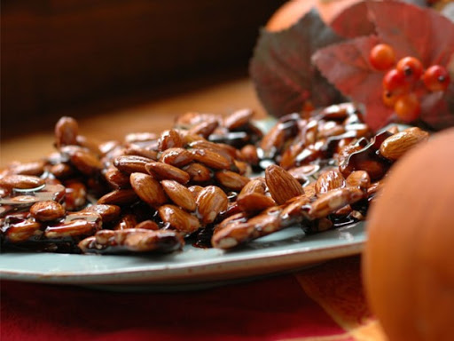 Add the almonds and mix well. Cook for a few minutes, making sure the almonds are fully coated. Remove the almonds from the heat and quickly pour and spread the hot almond-sugar mixture onto a buttered cookie sheet to the desired thickness.