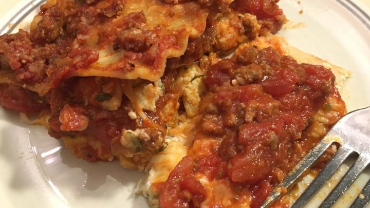 2. Preheat oven to 375 degrees F (190 degrees C). Bring a large pot of lightly salted water to a boil. Add lasagna noodles, and cook for 5 to 8 minutes, or until al dente; drain. Lay noodles flat on towels, and blot dry.