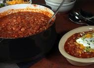 Mix in rest of ingredients, mashing about half of the pinto beans as you do so, heating on low until evenly melted.
