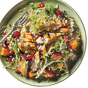 3. Combine oil, rind, juice, and mustard in a large bowl, stirring well with a whisk. Add chopped, cooked chicken, nectarines, and remaining ingredients; toss well.