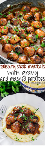 When the gravy is done add the meatballs back to the skillet and toss them around so they're covered in the gravy. Garnish with parsley.