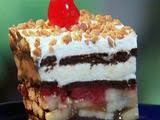 Place half of ice-cream sandwiches evenly over bottom of pan, completely covering bottom, cutting sandwiches to fit, if necessary. Top evenly with banana slices. Pour hot fudge sauce over bananas. Top with cherries and 1/2 of the toffee bits and pour butterscotch evenly on top. Layer with remaining ice cream sandwiches and spread whipped topping over sandwiches; sprinkle with remaining toffee bits.
