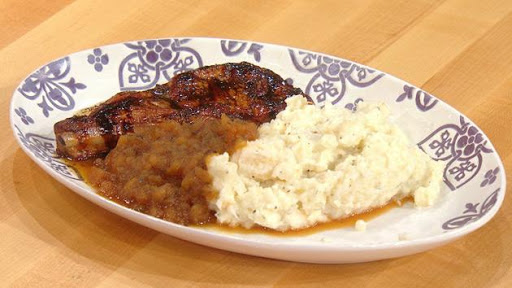 Pork Chops with Balsamic Brown Butter, Applesauce with Thyme, Mashed Potatoes and Celery Root