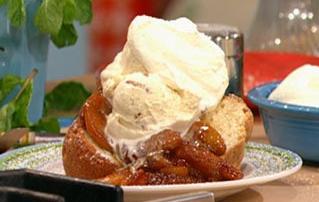 Spoon peaches and sauce directly from the skillet over pieces of pound cake and serve with a scoop of butter pecan ice cream alongside.