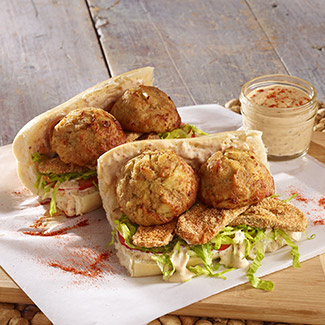 To prepare the sandwiches, cut the rolls open lengthwise, without cutting all of the way through. Spread the remoulade sauce liberally inside of the rolls. On each roll, place 3 slices of tomato, shredded lettuce, and 3 fried pickle slices. Place 2 crab cakes on each and serve with any remaining remoulade.