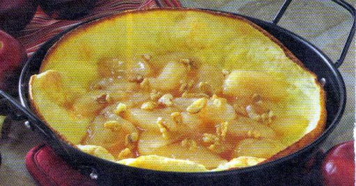 2)In a small saucepan,warm pie filling over low heat until heated through. Pour into center of puff pancake. Sprinkle with walnuts if desired. Serve immediately.