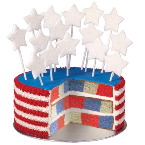 Decorate top and sides of cakes with patriotic sprinkles, etc.