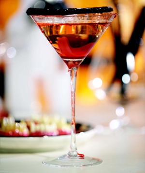 Garnish with wax teeth, candy corn, licorice, and/or blood orange slice.
