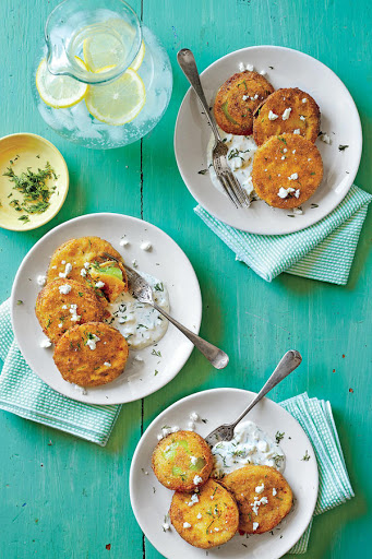 Fried green tomatoes are a Southern delicacy. Add this recipe to your repetoire for a no-fail crowd pleaser that will be a winner with friends and family no matter what the occasion. When you're looking for a more powerful flavor in the dressing, substitute blue cheese for the feta. Don't skimp when it comes to the dill—you'll love the fresh flavor.