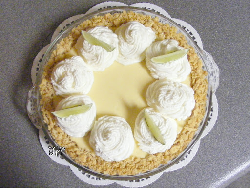 In a large mixing bowl and using a mixer, beat the whipping cream, confectioners sugar, dry milk powder, and vanilla until firm to stiff peaks form. Pipe dollops onto the pie, or just spread it out over the top. Garnish with thin lime wedges, if desired.