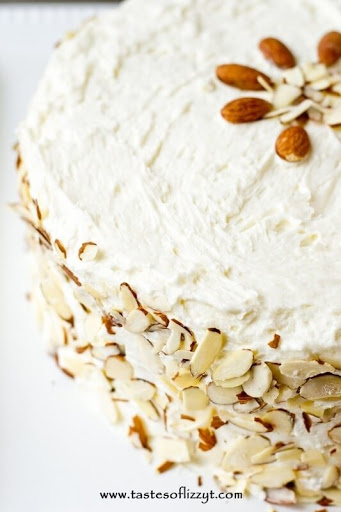 Decorate the sides and top with sliced and whole almonds, as the picture shows, if desired.