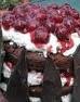 Press half the cherries into the cream. Sprinkle the second sponge cake with kirsch syrup as before. Lay on top of bottom layer. Spread with cream and top with cherries as before.