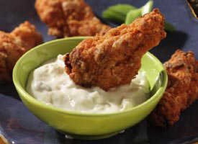Loved this recipe it turned out fine - only change I made was to crumble up small chunks of blue cheese into the blue cheese dressing giving it an even stroner blue cheese taste - I served also salsa and chips - people ended up using the chips in the blue cheese dressing. It was great!!