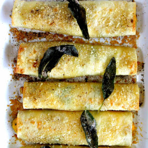 Butternut Squash Cannelloni with Ricotta and Kale in Lemon Sage Brown Butter Sauce