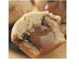 These tender golden muffins hold a surprise inside: a layer of rich cinnamon filling and a molten center of caramel.