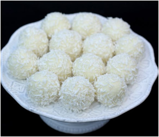 Make balls with your palms and stuff roasted hazelnut in each. Then coat the balls with remaining coconut flakes. You can serve them in small cupcake liners. Keep the balls in the fridge.