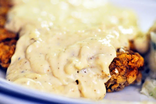 Press steaks into flour. Shake off excess. Dip into batter then back into flour. Press. Fry in hot oil 2 1/2 - 3 minutes or until floating on top.