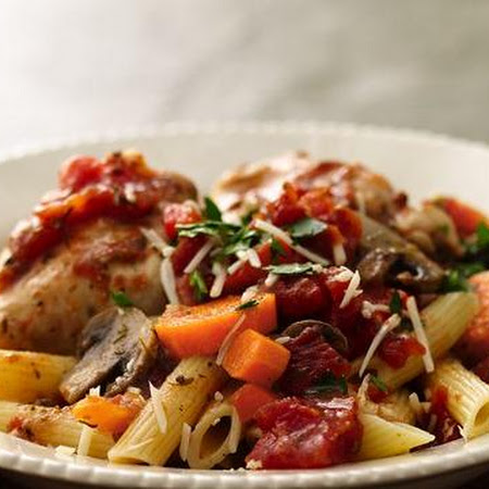3. Serve chicken with pasta. Garnish with cheese and parsley.