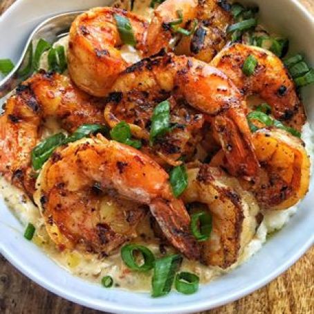 Sautee shrimp. Cook grits. Thicken sauce; pour over all. Top w/scallions.