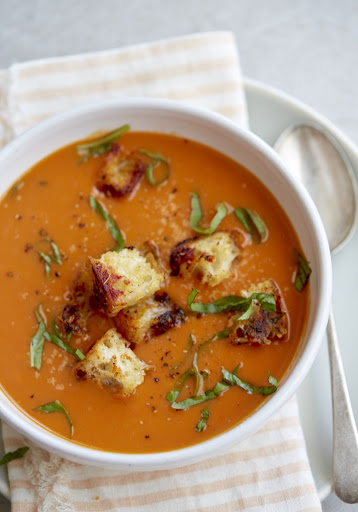 Add the bread cubes in a single layer. Let bread toast for 1 minute, then toss again, every minute or so, until the cubes are crisp and and brown on all sides, about 5 minutes total.
