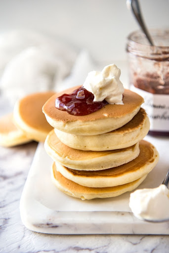 Place 2 tbsp of batter (or ½ filled ice cream scooper which is what I use) into the skillet. Cook until bubbles appear on the surface (see photo) then flip and cook the other side until golden (usually around 1 - 1½ minutes). Repeat with remaining batter.