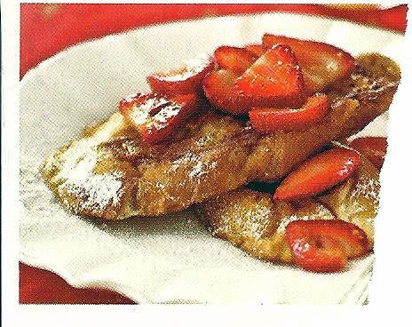 4. Place 2 bread slices on each of 4 plates. Sprinkle each serving with 1 1/2 tsp. powdered sugar; top each with 1/2 cup strawberry mixture.