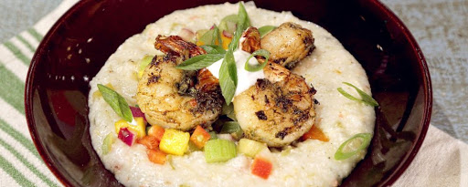 Meanwhile, bring 2 cups water and 1 cup milk to simmer in a medium pot. Add grits and salt to taste, reduce heat to medium-low, and cook, stirring occasionally, until soft, thick, and creamy, about 30 minutes. Stir in the ham???tomato mixture and cheddar cheese. Season with salt and pepper to taste. Serve soft grits with salad, Jerk shrmp and sauce.