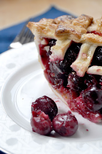 Add cherry mixture to dough lined pie plate. Top the pie with a lattice crust. Here is a great youtube tutorial on how to create a lattice [link to https://www.youtube.com/watch? v=Hv4809RKhzg&feature=kp ] When the lattice is complete, top with additional decoration if using, then brush the lattice crust with beaten egg and sprinkle with turbinado sugar.