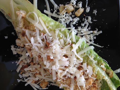 - 1 head chilled Romaine heart lettuce, washed and trimmed each end, sliced in half lengthwise
