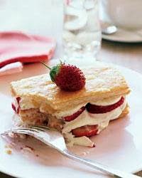 6. Arrange all of the puff pastry pieces on a work surface. Brush 4 of the pieces with the raspberry jam and the remaining 8 pieces with the apricot jam. Spoon a scant 1/4 cup of the pastry cream onto the 4 raspberry-topped pieces and 4 of the apricot-topped pieces. Arrange the strawberries over the cream filling; reserve 4 of the whole or sliced strawberries for garnish. Dollop any remaining cream over the strawberries. Stack the raspberry layers on top of the cream-filled apricot layers, pressing lightly. Top the stacks with the remaining apricot-topped layers. Refrigerate the napoleons until chilled, 4 to 6 hours. Garnish the napoleons with the reserved strawberries and serve.