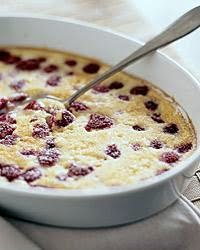 3. Scatter the raspberries over the custard and sprinkle with the superfine sugar. Pour the remaining custard on top and tamp down any floating raspberries. Bake for 50 minutes longer, until the custard is golden and set in the center. Let the custard cool slightly and serve warm or at room temperature.