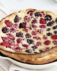 2. Melt the butter in the skillet and add the batter, spreading the fruit evenly. Bake in the center of the oven for about 22 minutes, until the edges are browned and puffed and the center is lightly browned in spots. Transfer the skillet to a trivet and dust the Dutch Baby with confectioners’ sugar. Cut into wedges and serve with the remaining fresh berries.